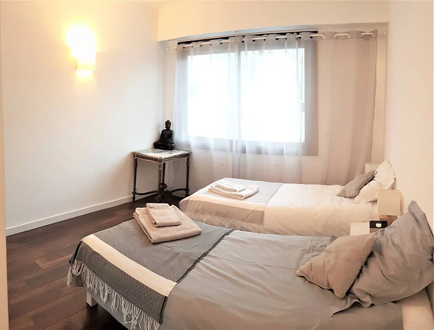 Nous vous proposons à la location un appartement 3 pièces meublé en bon état,4ème étage avec ascenseur rue mérimée Le Cannet. Il est proche de toutes commodités, du centre du Vieux Cannet et du boulevard Carnot. Il se compose d'un séjour, d'une cuisine indépendante équipée, de 2 chambres avec placards, d'une salle de bains, d'un WC indépendant et d'une terrasse avec vue dégagée. Le loyer est de 1450 euros charges comprises, avec eau froide collective.Disponible fin octobre.