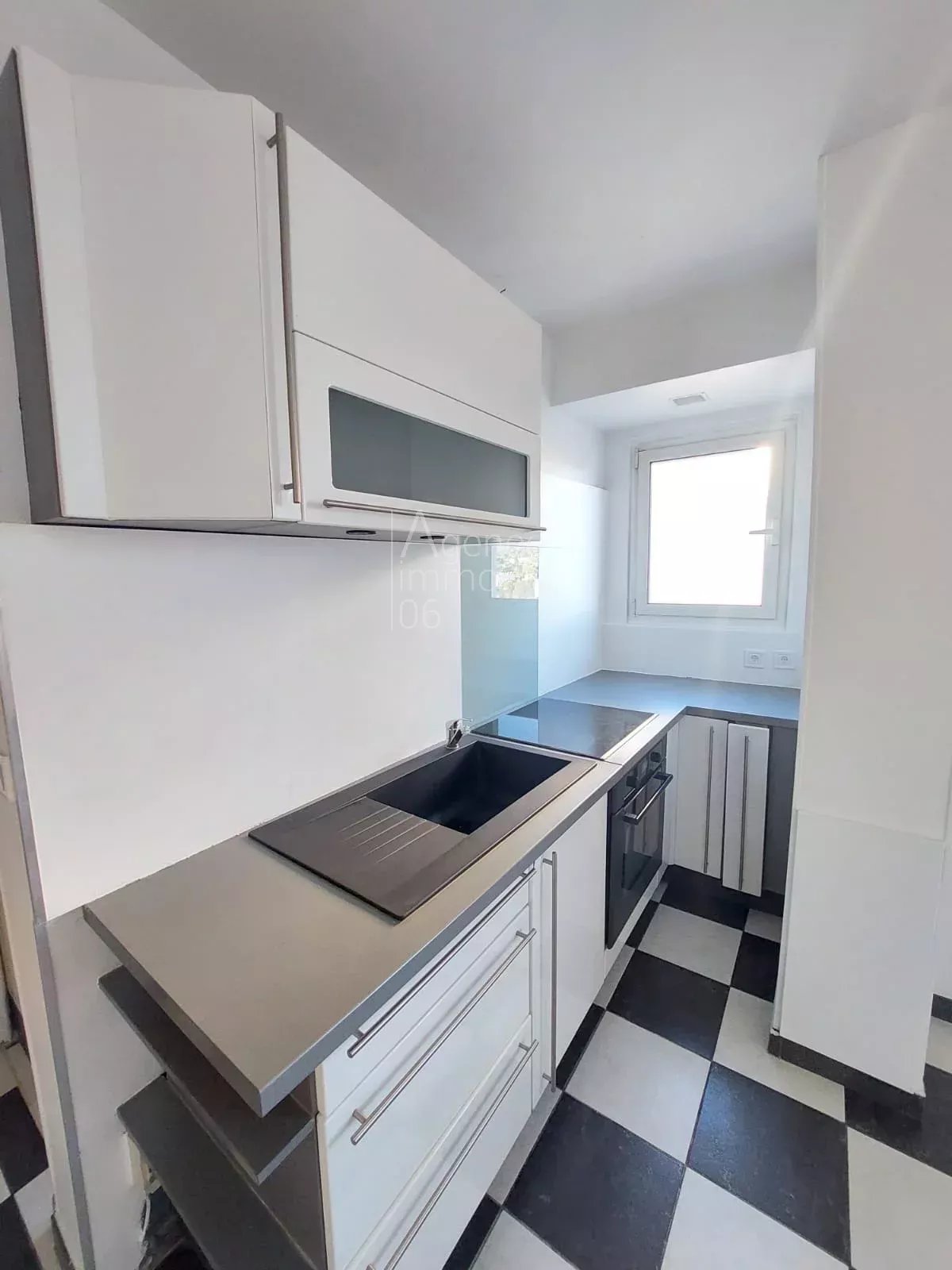 Joli 2 pièces de 32m2 à louer en bail vide ,4ème étage avec ascenseur. Il est composé d'une entrée, d'un séjour avec cuisine équipée ouverte, d'une chambre avec balcon, d'une salle d'eau avec wc,et d'un dressing. Loyer 750€ par mois charges comprises (communs, eau froide).CDI demandé ou étudiant avec garant. Libre pour Novembre. Quartier Grande Bretagne Le Cannet
